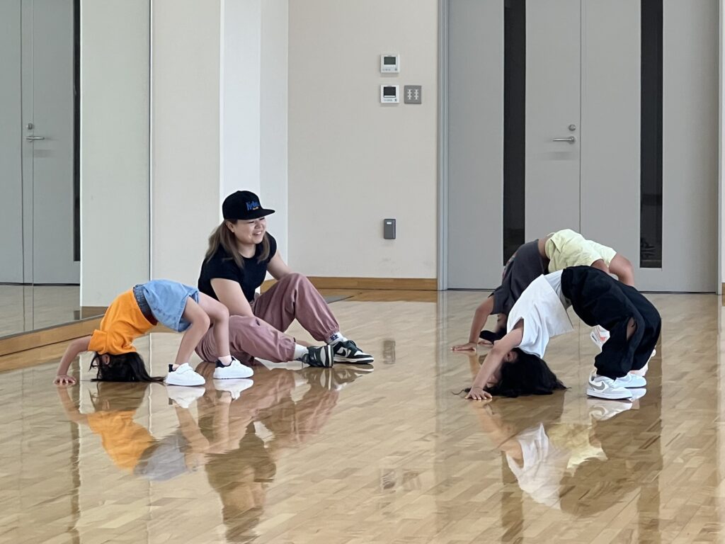 ブリッジや側転はアクロバティックな振りをする時の基本となります。柔軟性があり、好奇心溢れる幼児期に身につけておくことが大事です。