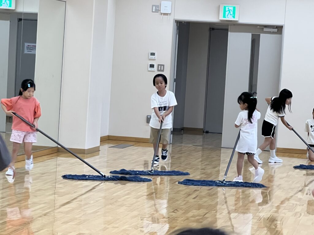 ダンスが終わったらみんなでお掃除します。もちろんキッズメンバーも! 自分より大きなモップを動かすのはなかなか難しかったり? 3〜4歳児が掃除しても掃除にならなかったり? いいんです。お掃除をするのは会場への感謝です🙏 ごみが残ってたら後で先生や次のクラスのお兄さん&お姉さんが片付けます。みんなで使った会場を綺麗にして終わります。当たり前を出来る人になれると良いですね❣️