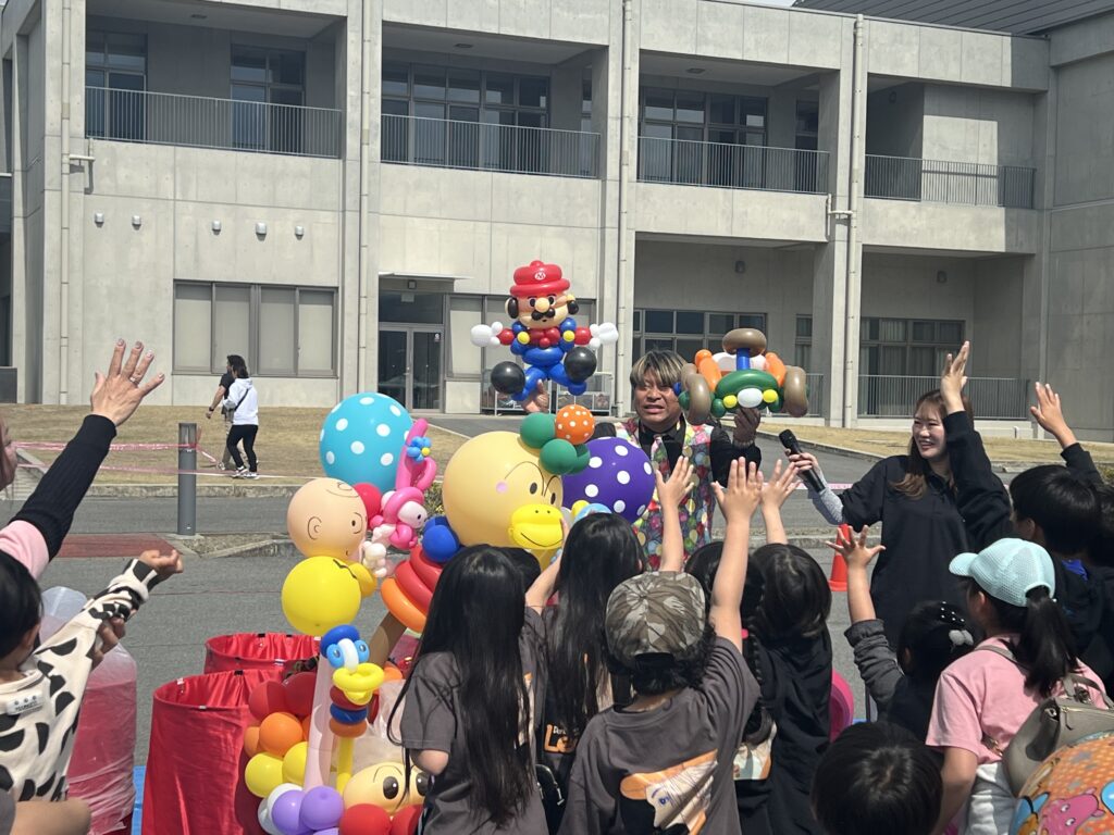 出番が終わったらバルーンパフォーマンスを見て、ラムネ早飲み大会、特殊車試乗体験などを楽しみました。