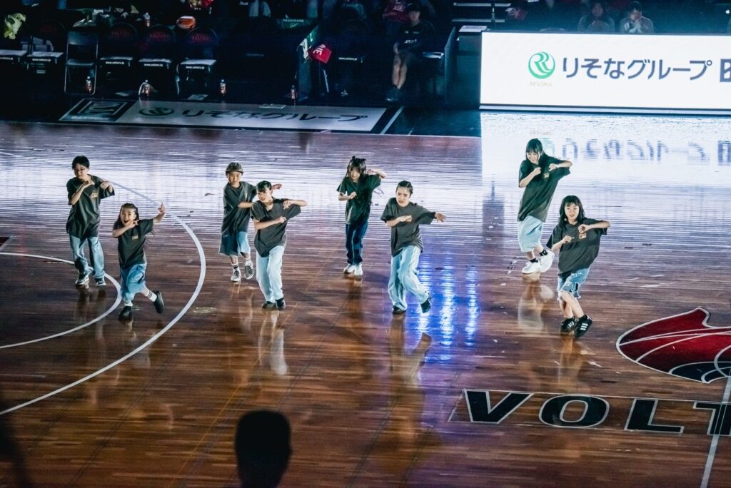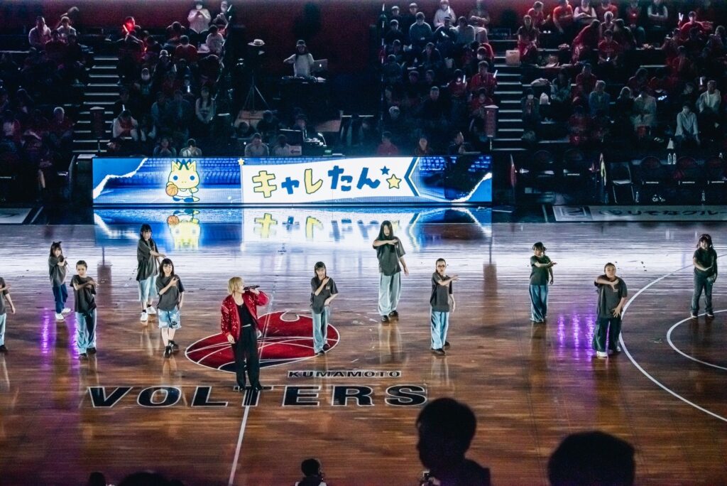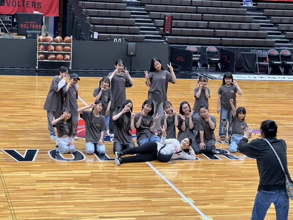 4月11日、プロバスケットチーム熊本ヴォルターズvs横浜エクセレンスのハーフタイムショーでシンガーソングライターの杉本琢弥さんとコラボパフォーマンスさせて頂きました。熊本地震では不自由な生活を経験しましたが、沢山の方の支援のおかげで復興できています。その感謝の気持ちを込めて元気いっぱい笑顔のパフォーマンスができました。